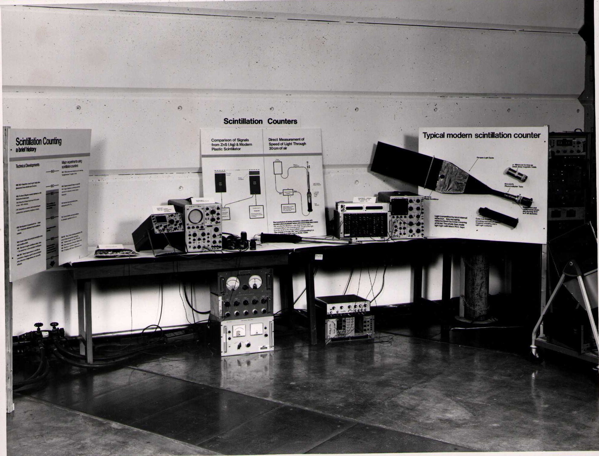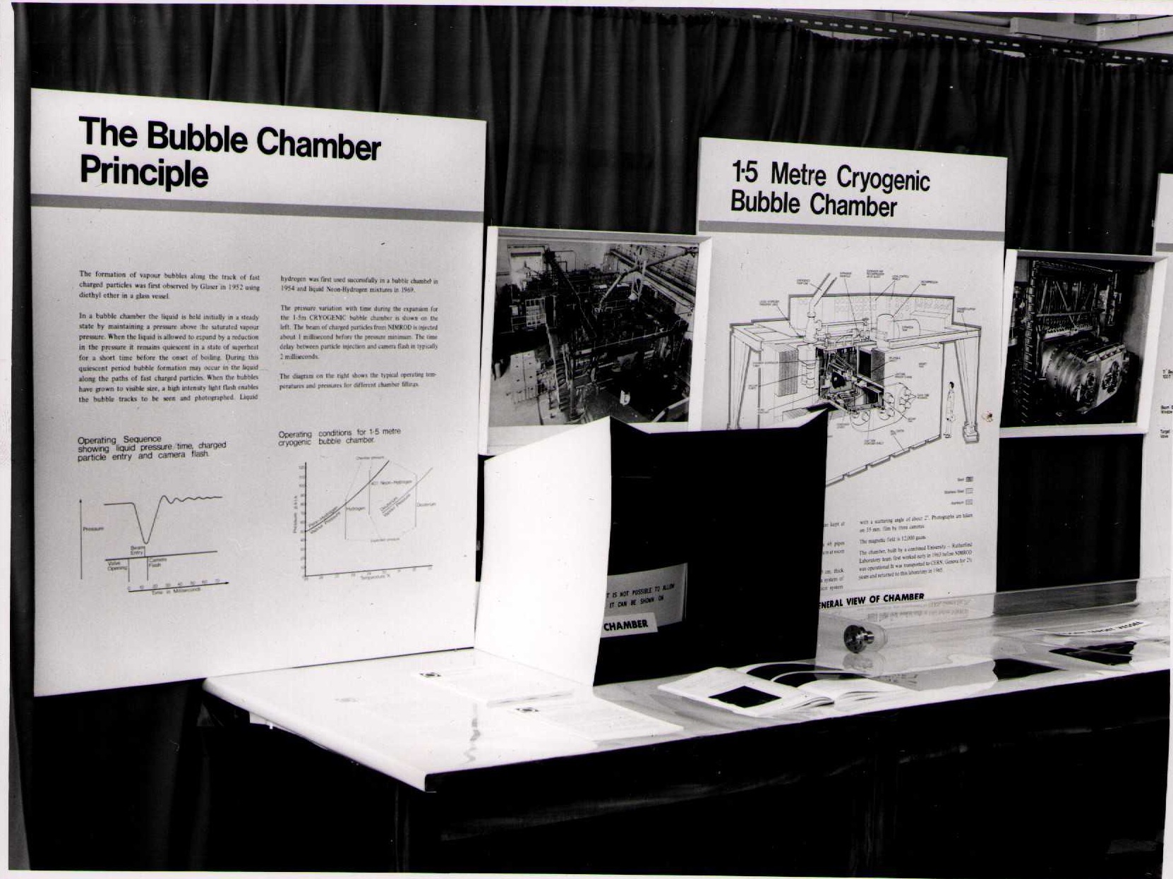 Photographs of exhibits from RHEL Open Week (1970) and Royal Society Rutherford Centenary (1971)