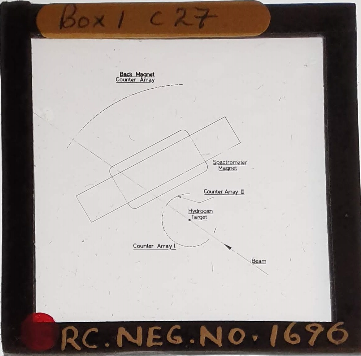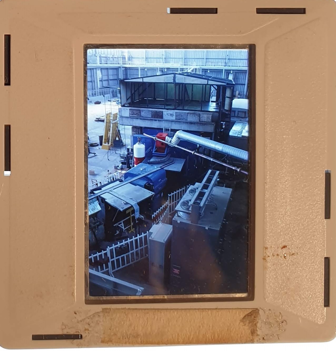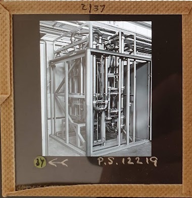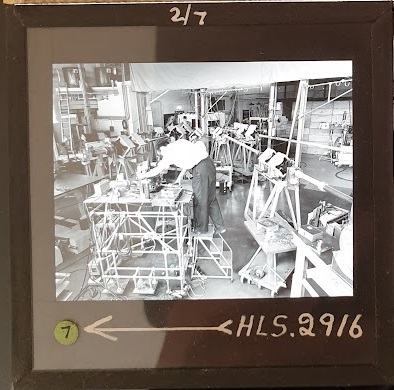Amongst the artefacts discovered in the archives are a number of wooden boxes of 3¼ inch (8cm) photographic slides, plus wooden boxes and four-drawer metal cabinets of 2 inch (5cm) slides. The larger slides are of the PLA, the smaller slides are of the PLA and Nimrod and have been photographed simply as a record. Initials in the photograph ID are the series ID, though what each series actually is unclear. Most of the slides have been labelled with a negative number, slide sequence number and sometimes a box number but sometimes these labels are obscured, have fallen off altogether or the slide may have been "borrowed" then put back in the wrong place.